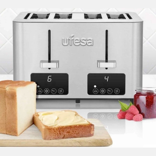 Функциональный и стильный прибор для семьи — тостер Ufesa Quartet Delux рассчитан на поджаривание четырёх ломтиков одновременно и сочетает в себе современные технологии, удобство управления и элегантный внешний вид.
