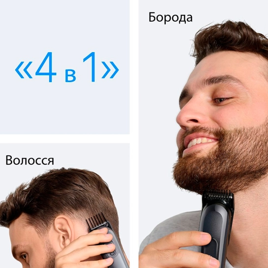 - 4-в-1: стрижка бороды, волос и точное оформление;