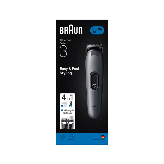 Braun All-in-One Series 3 — это универсальный набор 4-в-1, который позволяет легко и быстро ухаживать за волосами и бородой. Невероятно острое лезвие обеспечивает мгновенную точность и эффективность, а 14 вариантов длины дают полный контроль над вашим стилем. Все насадки и гребни можно мыть под водой, а щёточка в комплекте помогает легко очищать прибор после использования.
