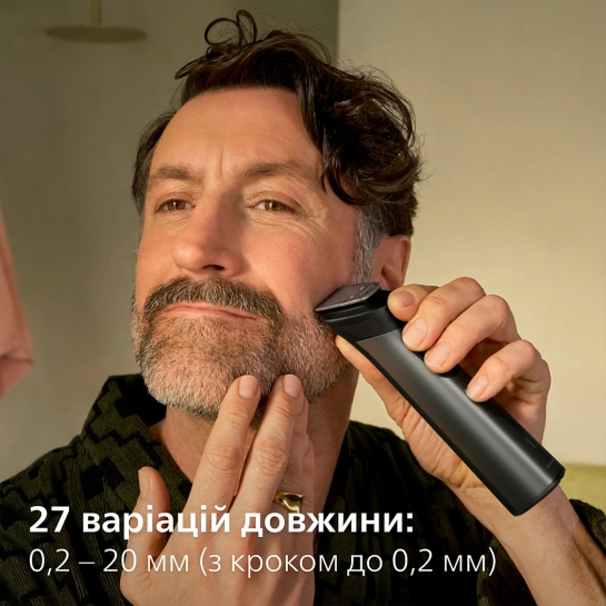Этот набор триммера с разными насадками предлагает 27 установок длины от 0,2 до 20 мм с шагом от 0,2 мм для ухода за короткой или длинной бородой. Узкий профиль насадки для контуров позволит легко создать желаемый образ, а металлический триммер поможет убрать волосы с щек, подбородка и шеи.