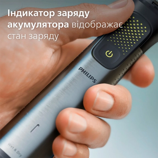 Индикатор заряда аккумулятора позволяет отслеживать текущий заряд аккумулятора: низкий, минимальный, идет зарядка или полный. Вы никогда не останетесь с наполовину выбритой бородой из-за того, что аккумулятор триммера внезапно разрядился.