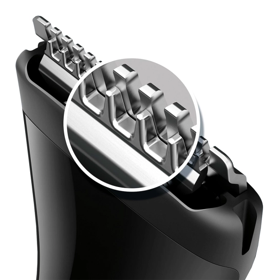 Подравнивайте волоски, чтобы поддерживать идеальный и аккуратный образ: щетина, борода, эспаньолка, бакенбарды и усы — любой стиль благодаря съемным гребням для точного подравнивания (1 мм, 3 мм, 5 мм).