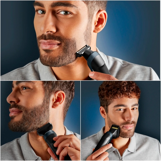 Единый, универсальный триммер для обрезки, укладки и бритья для идеально подобранного стиля бороды. Благодаря 7 гребешкам и 3 специальным инструментам для бороды, он идеально подходит для любого типа бороды, даже плотного.