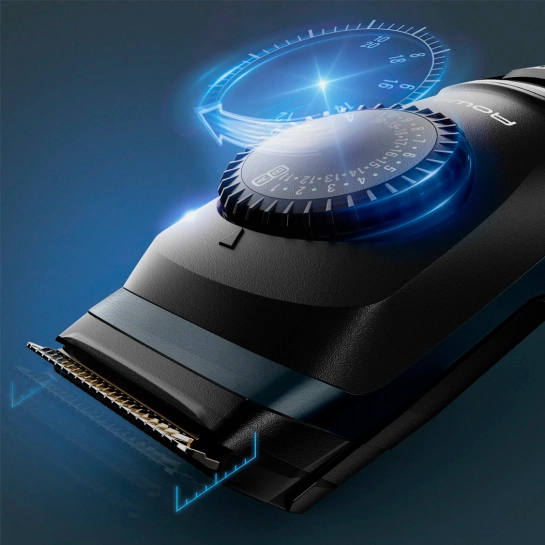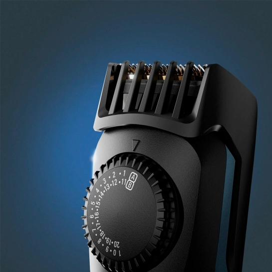 Два регулируемых гребня предлагают 39 вариантов длины — от 0,5 до 20 мм с шагом 0,5 мм. Это позволяет легко адаптировать триммер под любой стиль — от короткой щетины до аккуратной бороды.