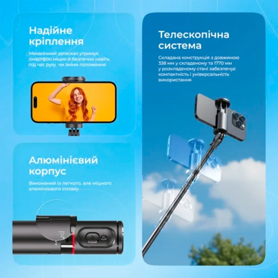 Корпус из прочного ABS и алюминиевого сплава гарантирует стабильность и долговечность даже при полном разложении. Механическое крепление надежно фиксирует смартфон и предотвращает его выпадение во время съемки.