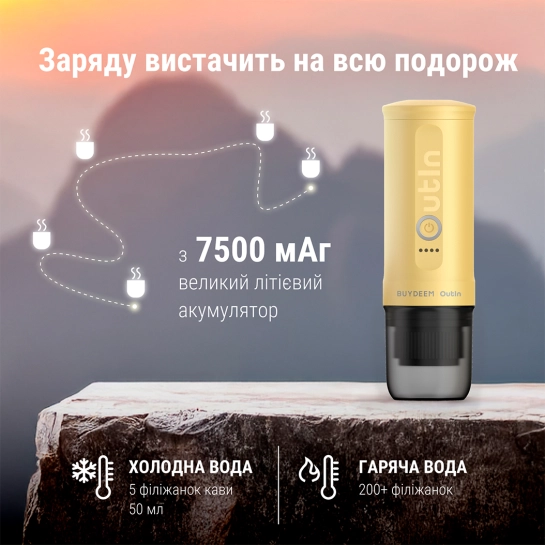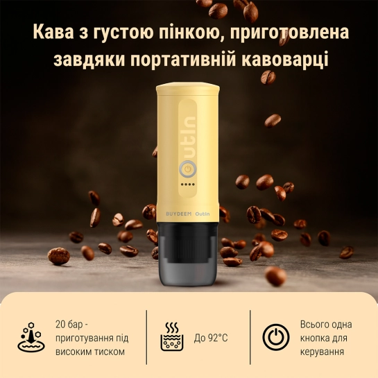 Опис Акумуляторна портативна кавоварка Outin X Buydeem Mellow Yellow (OTEM-01-MY)