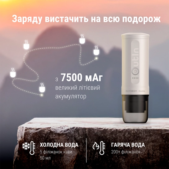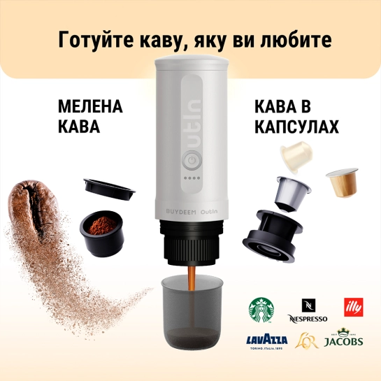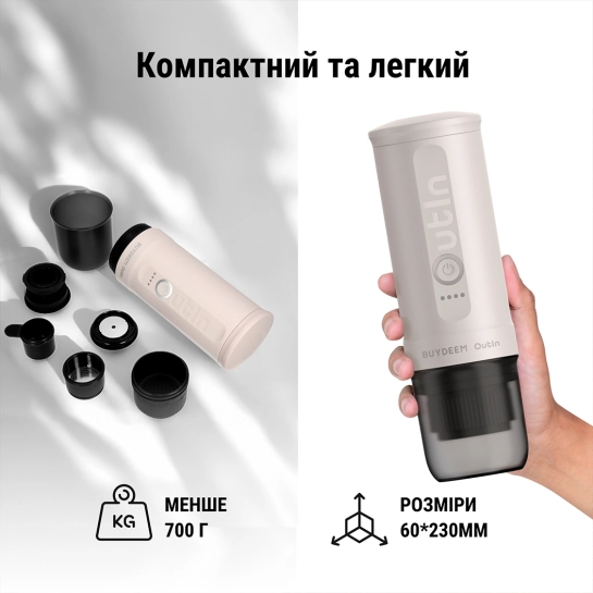 Опис Акумуляторна портативна кавоварка Outin X Buydeem Oatmilk (OTEM-01-OW)
