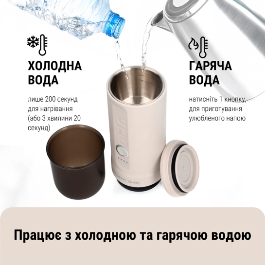 Насолоджуйтесь свіжою кавою, де б ви не знаходилися! Її гладкий та легкий дизайн у поєднанні з потужною батареєю гарантує, що вона задовольнить усі ваші потреби у приготуванні кави. Вага всього 670 грамів, вона неймовірно портативна, що дозволяє легко брати її з собою, чи ви вдома, в офісі або в дорозі. Завдяки функції швидкого нагріву вона досягає ідеальної температури заварювання всього в 200 секунд, дозволяючи вам насолоджуватися гарячою чашкою кави у будь-який час та в будь-якому місці.