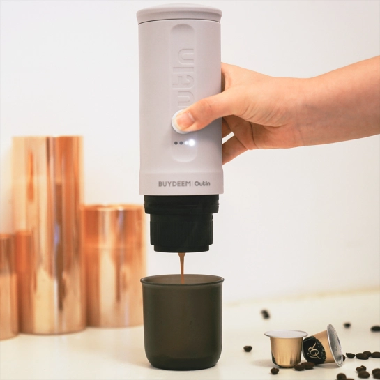 Портативна кавоварка Outin призначена для задоволення всіх ваших уподобань щодо кави. Вона підтримує як кавові капсули, так і мелену каву, надаючи вам гнучкість у виборі найкращого методу заварювання. Кавомашина оснащена потужним акумулятором ємністю 7500 мАг, що дозволяє заварювати до 5 порцій холодної води або більше 200 порцій гарячої води на одній зарядці. Така ємність акумулятора гарантує достатньо енергії, щоб насолоджуватися улюбленими кавовими напоями протягом дня.