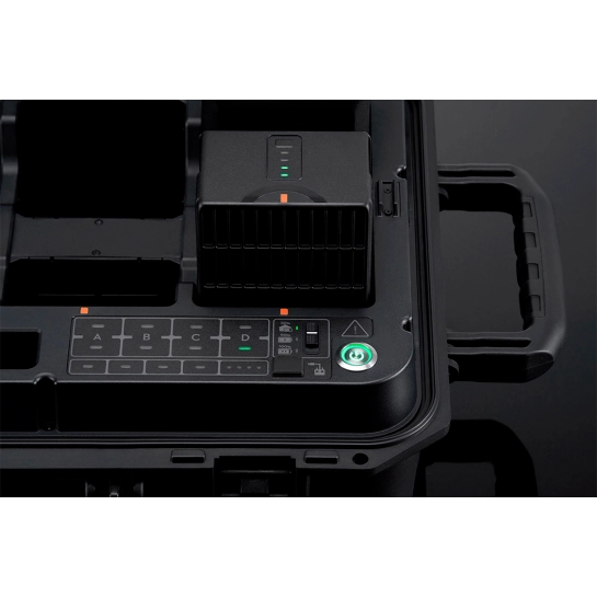 Акумуляторна станція – це універсальне рішення для заряджання, зберігання та транспортування акумуляторів. Нові режими Storage Mode та Ready-to-Fly Mode підвищують ефективність заряджання та продовжують термін служби акумулятора. Нові колеса з поворотом на 360 ° полегшують транспортування та переміщення. Акумуляторна станція оснащена вісьмома портами для акумуляторів TB65, чотирма портами для акумуляторів WB37, одним портом обслуговування USB-C, одним портом заряджання USB-C та одним портом заряджання USB-A. Вона може одночасно заряджати до двох акумуляторів TB65 та одного акумулятора WB37.