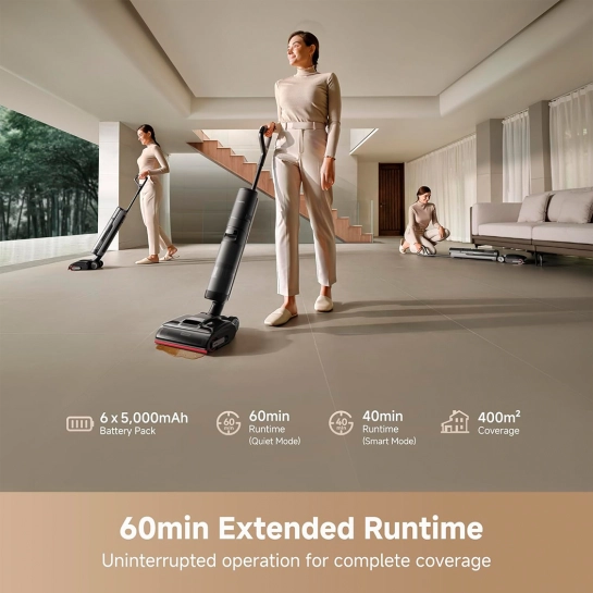 Миючий пилосос Dreame H15 Pro - це флагманський бездротовий пристрій для сухого, вологого прибирання та збору рідин, що поєднує всмоктувальну силу 21 000 Па та акумулятор 5000 мА·год, що забезпечує до 60 хвилин автономної роботи. Завдяки безбортовій щітці з технологією TangleCut, RGB-датчику забруднення, автоматичному регулюванню потужності та інтелектуальному управлінню через програму DreameHome, пилосос ефективно очищає навіть уздовж стін та в кутах. Модель має 4 режими збирання, LED-дисплей, функцію самоочищення щітки гарячою водою (до 100 ° C), сушіння гарячим повітрям, іонізацію сріблом та вбудовану систему дезінфекції. Об'єм резервуарів: 780 мл для чистої води та 700 мл для брудної. Завдяки технологіям GlideWheel, Lie-Flat Reach та ThermoTub, Dreame H15 Pro забезпечує максимальну гігієну, комфорт та продуктивність прибирання.