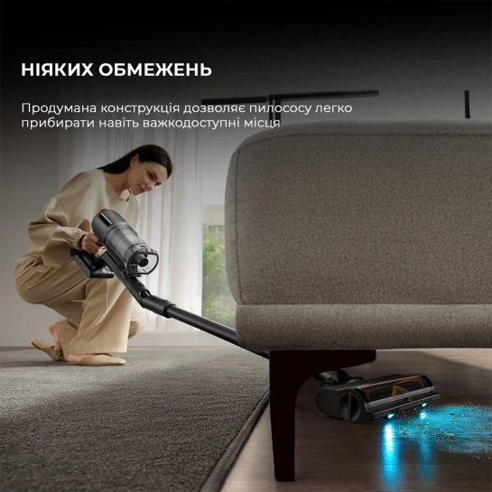 Акумуляторний пилосос Dreame Z30 AquaCycle відрізняється високим рівнем мобільності завдяки гнучкому інноваційному з'єднанню між щіткою і трубкою. Така конструкція дозволяє легко дістатися до найвіддаленіших і складніше доступних зон - під шафами, диванами або ліжками, не докладаючи зайвих зусиль. Завдяки низькопрофільній насадці та ергономічному куту нахилу ручки, прибирання стає не тільки ефективним, а й комфортним для спини. Ви зможете підтримувати порядок у кожному куточку, не пропускаючи жодної ділянки. Dreame Z30 AquaCycle - це свобода руху та бездоганна чистота навіть там, куди зазвичай складно дістати.