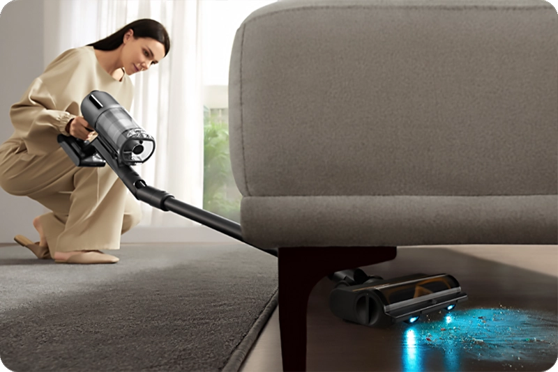 Забудьте про пропущені крихти або пил під меблями - система Blue Lights Dirty Detection, вбудована безпосередньо в щітку пилососу Dreame Z30 AquaCycle, забезпечує точне виявлення найменшого бруду. Завдяки інтенсивному блакитному підсвічуванню пилу, волосся та сміття, навіть у затемнених зонах, ви завжди бачитимете, де ще потрібно пройтися. Така технологія не просто підвищує ефективність прибирання, а й робить її візуально контрольованою та результативнішою. Dreame Z30 AquaCycle дбає, щоб чисто було не тільки на око, а й у кожному важкодоступному куточку.