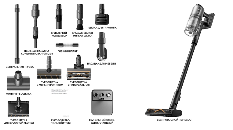 Комплектація акумуляторного пилососу Dreame Z30 AquaCycle