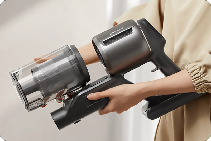 З Dreame Z30 AquaCycle обслуговування перетворюється на простий та швидкий процес. Контейнер для збирання пилу оснащений інтуїтивно зрозумілим механізмом миттєвого очищення - достатньо лише одного натискання кнопки, щоб витягти його без зайвих рухів. Потім легко відкривається кришка, і весь вміст висипається прямо у відро для сміття, не торкаючись пилу руками. Така конструкція не тільки заощаджує час, а й гарантує повну гігієнічність використання. Dreame Z30 AquaCycle створений для тих, хто цінує комфорт, чистоту та безпеку у кожній деталі.