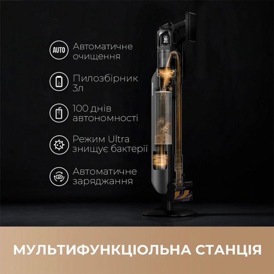 Головна особливість Dreame – це станція, яка бере на себе найнеприємніший етап збирання. Вона автоматично переносить зібране сміття до герметичного мішка об'ємом 3 літри, і вся операція відбувається в одне натискання. Такий мішок можна не змінювати до ста днів, це суттєво економить час і робить прибирання більш комфортним. Крім того, станція виконує ще одну функцію - заряджає пилосос, як тільки ви встановлюєте його на місце. Це означає, що він завжди готовий до роботи.