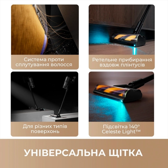 - Підсвічування Celeste Light – освітлює прихований пил на темних ділянках