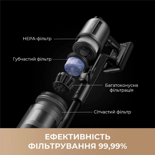 - Багатошарова фільтрація + HEPA H14 – затримує 99,99% мікрочастинок