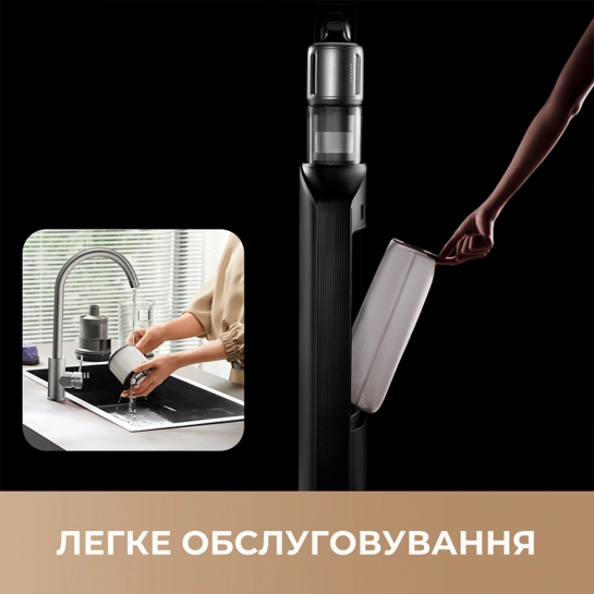 Після прибирання не доведеться витрачати багато часу на догляд. Пилозбірники легко замінювати, а окремі компоненти можна промити під водою. Заощаджуйте витратні матеріали, продовжуючи термін служби пристрою. Система легкої заміни зменшує ваш контакт з пилом, тому ваші руки завжди чисті і ви не дихайте алергенами. Промивання компонентів водою підтримує стабільну силу всмоктування та запобігає неприємним запахам. Вбудовані індикатори повідомляють, коли потрібне очищення або заміна деталей.