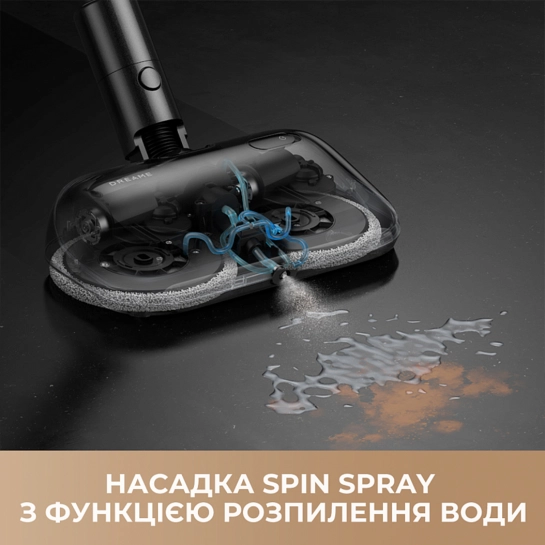 Ще одна деталь, що виділяє Dreame, - миюча насадка з механізмом, що обертається, і системою розбризкування води. Вона попередньо зволожує плями, а потім завдяки швидким обертам легко відтирає їх. Так ви можете спокійно усунути сліди від лап домашніх тварин, пролиту каву або інші стійкі забруднення. Такий трюк замінює кілька інструментів відразу: вам не потрібна окремо швабра або ганчірка, адже пилосос бере на себе повний цикл від збирання пилу до миття.