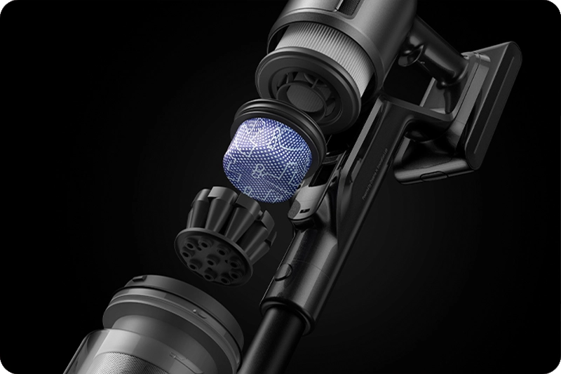 Очищення повітря тут продумане не гірше, ніж саме прибирання. Dreame затримує до 99,99% найдрібніших частинок завдяки багатошаровій системі фільтрів. HEPA H14 у складі цієї системи вловлює пил, алергени, бактерії і навіть частину вірусів, залишаючи після збирання не тільки чисту підлогу, а й помітно свіже повітря. Якщо у вашій родині є маленькі діти або хтось, хто страждає на алергію, чисте повітря особливо важливе.