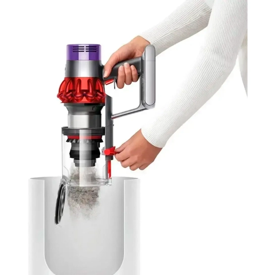 Двигун пилососу Dyson Cyclone V10 розташований над рукояткою, тому центр ваги знаходиться близько до руки, що полегшує прибирання високорозташованих поверхонь і важкодоступних місць.
