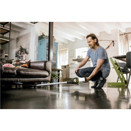 Підтримка чистоти – це дуже просто, якщо використовувати для збирання акумуляторний пилосос VC 6 Cordless ourFamily. У цьому апараті використані численні інтелектуальні рішення, такі як механізм швидкого спустошення сміттєзбірника, функція Boost і активна насадка для підлоги зі світлодіодним підсвічуванням для ефективного прибирання в недостатньо освітлених місцях. Іншими перевагами є низький рівень шуму та наявність наочного індикатора, що відображає стан акумулятора та інші повідомлення. Крім того, у пилососі передбачений зручний фіксатор вимикача, що виключає необхідність постійно утримувати його в натиснутому стані. Настінний тримач із функцією заряду дозволяє зручно зберігати апарат та заряджати його акумулятор. Потужний (250 Вт) безщітковий двигун постійного струму, що живиться від акумулятора напругою 25,2 В, гарантує ефективне прибирання.