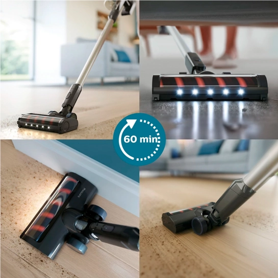 Прибирайте будинок за один раз завдяки акумулятору, який працює до 60 хвилин у звичайному режимі та 15 хвилин у турборежимі.