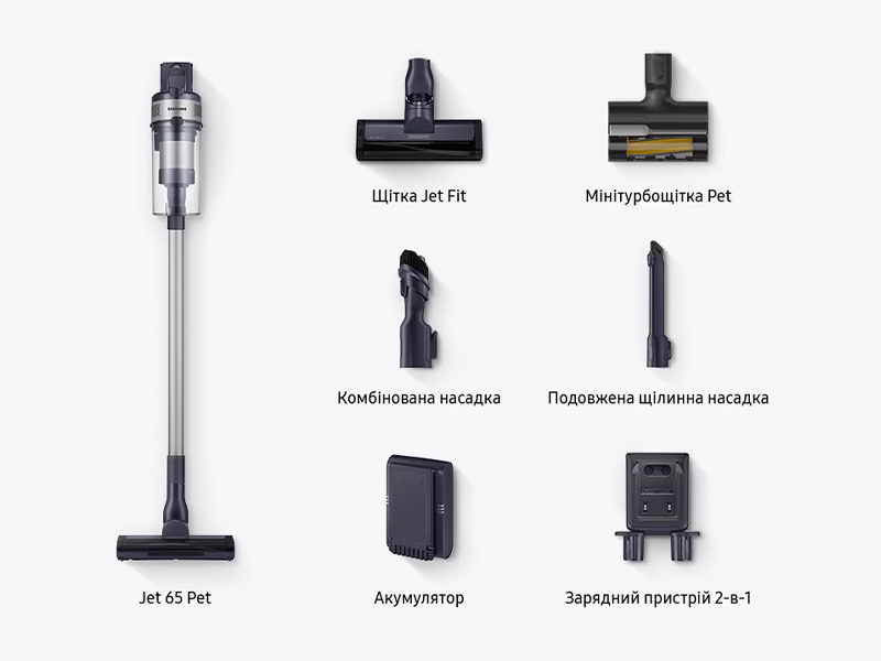 Опис Акумуляторний пилосос Samsung Jet 65 Pet Cordless Stick Vacuum (VS15A60AGR5)