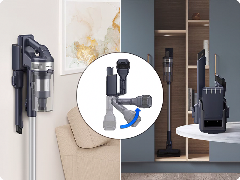 Зберігайте та заряджайте пилосос зручніше за допомогою зарядної станції 2-в-1, яку можна легко пристосувати до будь-якого будинку.