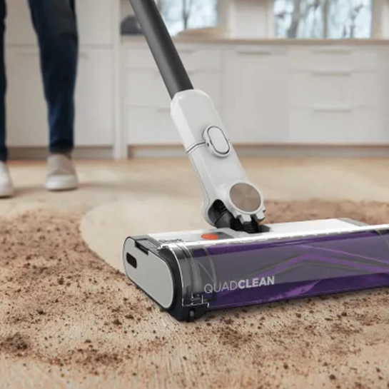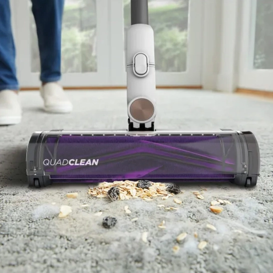 Чи набридло постійне очищення моторизованої щітки пилососа під час прибирання? Відмінно, оскільки покращена насадка QuadClean обладнана функцією проти намотування вовни та волосся, яка автоматично видаляє їх із щетинок, так що вам не доведеться цим займатися. Потужний двигун Shark всмоктує як волосся, так і шерсть, а також інше сміття. Спеціальна гребінець у насадці відокремлює волосся і шерсть домашніх тварин будь-якого розміру, запобігаючи їх намотування навколо моторизованої щітки. Волосся всмоктується безпосередньо в контейнер для пилу, залишаючи чисту насадку.