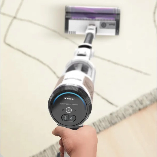 Дізнайтеся інноваційну серію пилососів Shark – Detect Pro! Цей легкий бездротовий пилосос розроблений для ретельного збирання, інтелектуально пристосовуючись до різних сценаріїв: він виявляє кути та типи покриття, знаходить забруднення та висвітлює темні області. Живиться пристрій компактним двигуном TurboDrive, який у поєднанні з різноманітними технологіями дозволяє пилососу вбирати до 50% більше сміття. Гнучка трубка пилососа легко змінює свою форму, забезпечуючи можливість прибирання під меблями без нахилу та болю у спині.