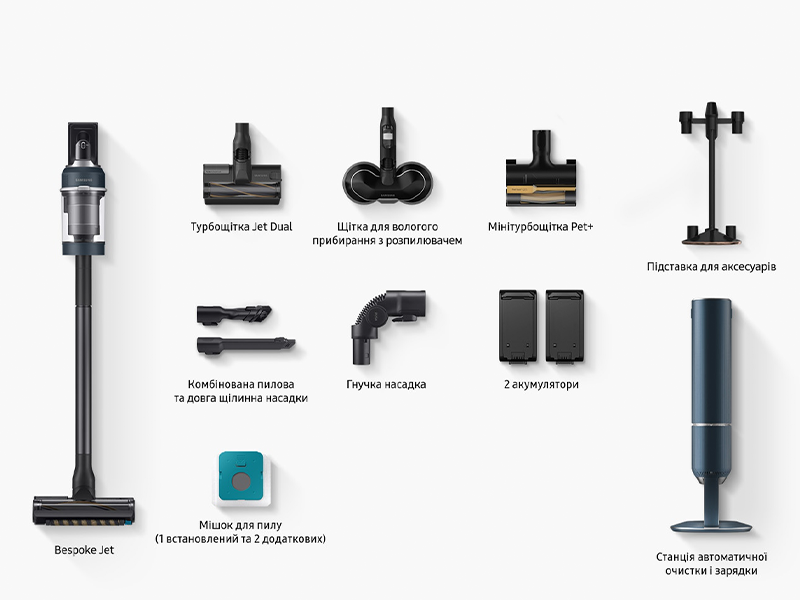 Характеристики для Акумуляторний пилосос із станцією автоматичного очищення Samsung Bespoke Jet (VS20B95973B/UK)