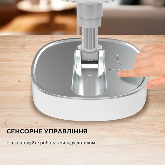 Регулюйте інтенсивність повітряного потоку, вибираючи одну із трьох швидкостей залежно від ваших потреб. Крім того, ви можете легко та комфортно керувати роботою вентилятора завдяки сенсорному управлінню.
