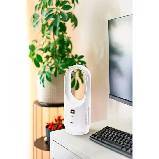 Відкрийте собі комфорт із настільним вентилятором 90-013 від Neo Tools. Його унікальна безлопатева конструкція створює м'який та рівномірний потік повітря, а благородний білий колір корпусу гармонійно доповнить будь-який простір. Розроблений для розміщення на столі, цей пристрій стане вашим надійним супутником у спекотні дні.