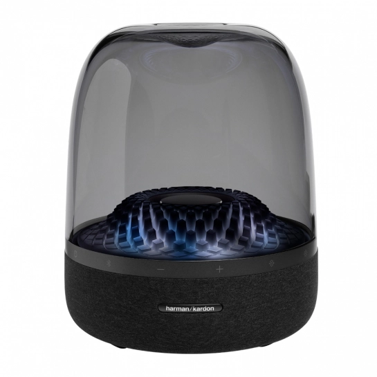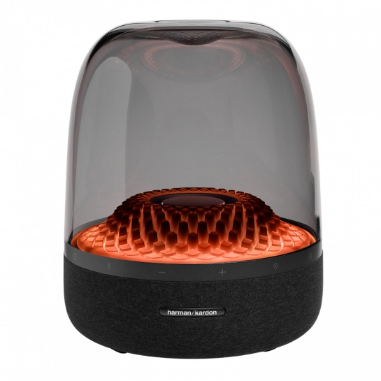 Яскрава візуалізація. Чудовий звук Harman Kardon. Bluetooth-колонка Aura Studio 4 створить вам музичний настрій за допомогою прозорого бані та тематичного підсвічування.