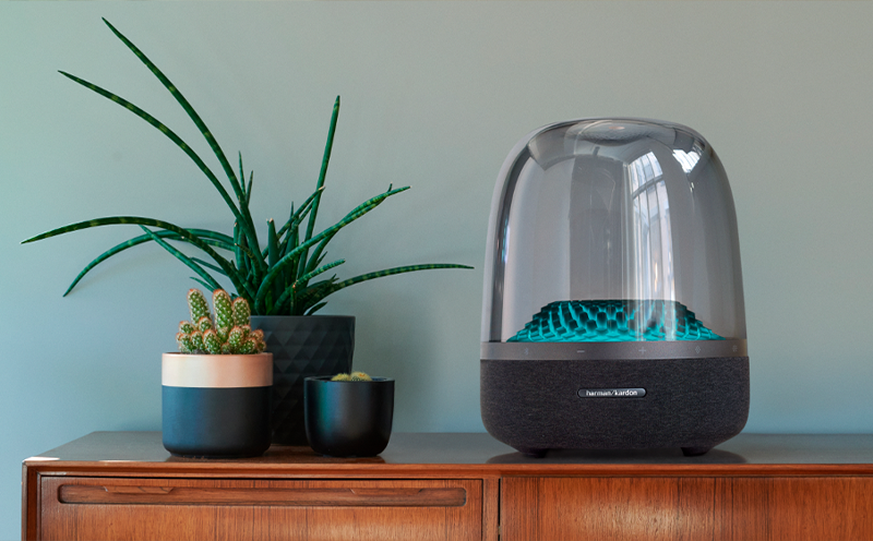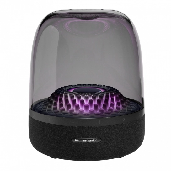 Яскрава візуалізація. Чудовий звук Harman Kardon. Bluetooth-колонка Aura Studio 4 створить вам музичний настрій за допомогою прозорого бані та тематичного підсвічування.