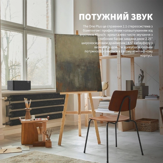 Klipsch The One Plus поєднує в собі позачасовий ретро-дизайн із сучасними технологіями, забезпечуючи потужний стереозвук 2.1 у компактному корпусі. Ця колонка не просто гаджет, а елемент, що надихає на музичні відкриття інтер'єру. Вона доступна для аудіофілів та новачків, де преміум'якість зустрічається з простотою без зайвих компромісів.