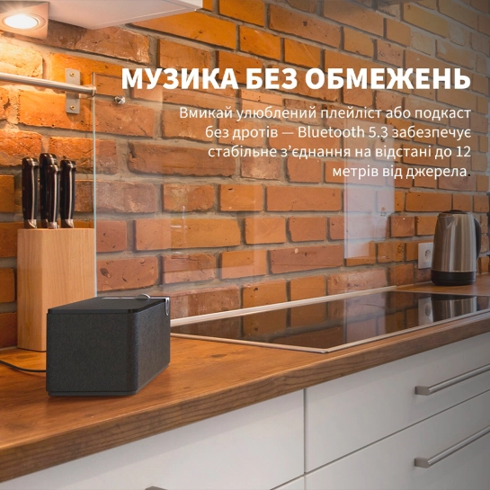 З Bluetooth 5.3 для стабільного стримінгу на відстані до 12 м, колонка миттєво підключається до смартфону або планшета, дозволяючи безшовно відтворювати плейлисти зі Spotify або подкасти з Apple Podcasts, ніби невидимий місток, що з'єднує ваш улюблений контент із повсякденністю. колонок у єдину звукову систему