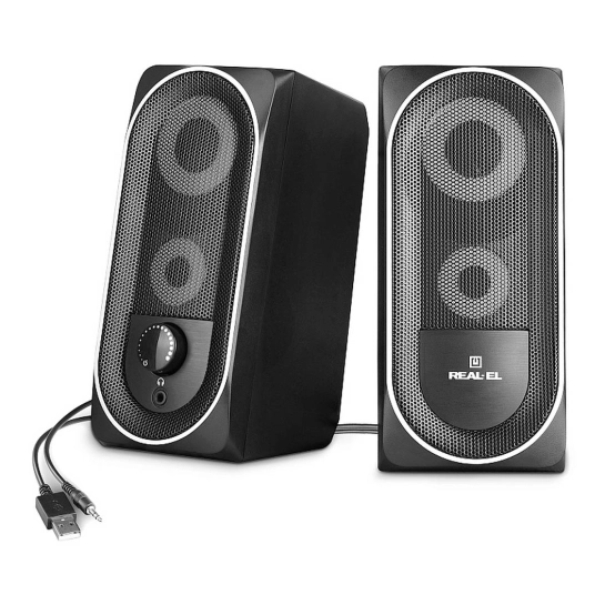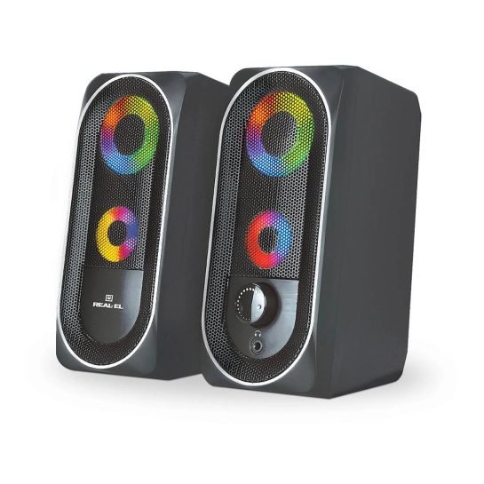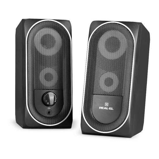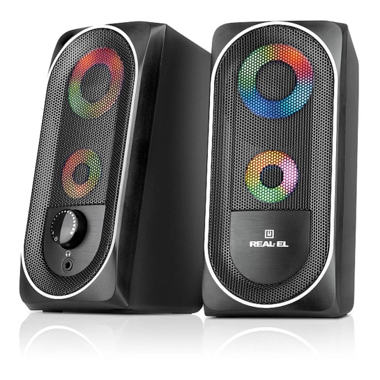 REAL-EL S-110 — відмінний варіант для тих, хто шукає доступну, зручну та стильну акустичну систему для дому або офісу. Колонки чудово підійдуть для фонового прослуховування музики, відеодзвінків, ігор та мультимедійного контенту, поєднуючи функціональність та візуальну привабливість.