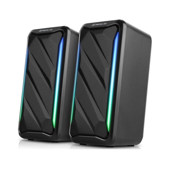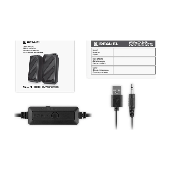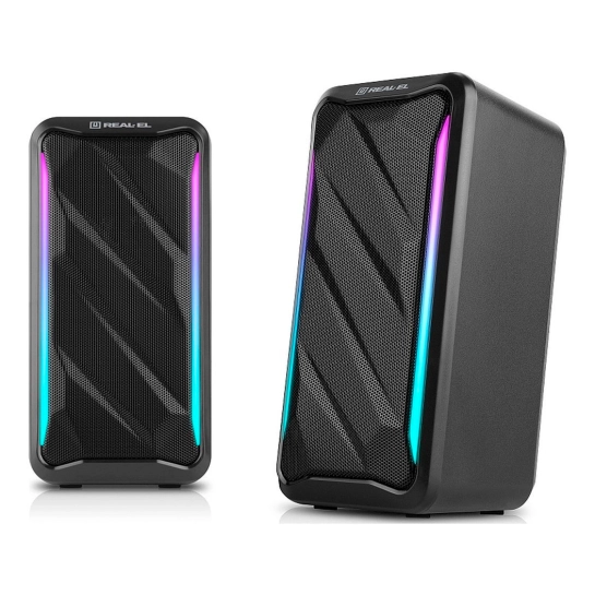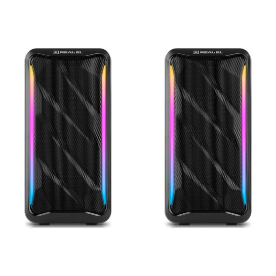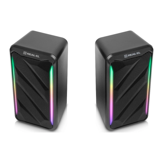 Мультимедійна акустична система REAL-EL S-130 – це просте та зручне рішення для відтворення звуку з комп'ютера або ноутбука. Акустика оснащена вбудованим підсилювачем та аудіокабелем, що дозволяє швидко підключити її практично до будь-яких джерел аудіосигналу. Живлення здійснюється через USB-порт ПК, ноутбука або через блок живлення 5V DC за допомогою вбудованого кабелю USB.