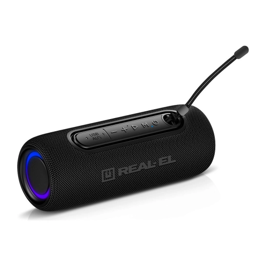 REAL-EL X-715 – це стильна портативна колонка, що поєднує потужне звучання, яскраве RGB-підсвічування та справжню свободу дій. Усередині — два динаміки та два пасивні випромінювачі, що забезпечують насичене стереозвучання з глибокими басами та чіткими деталями.