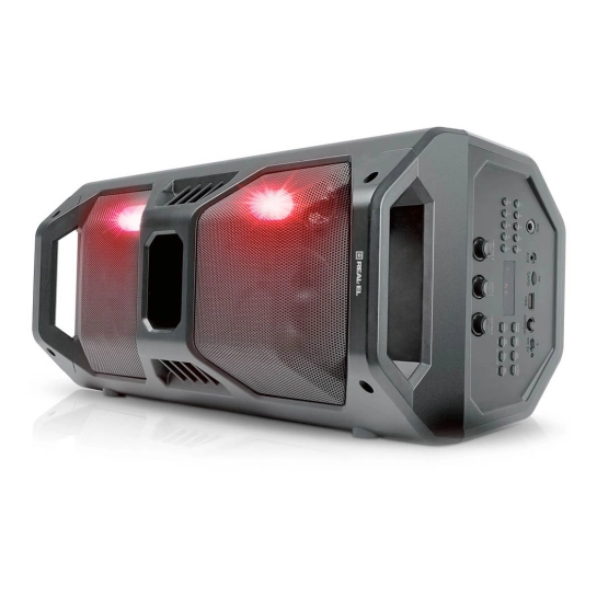 Мультимедійна портативна акустична система REAL-EL X-757 — це стильний і потужний «бумбокс» нового покоління, який поєднує якісне звучання, сучасний дизайн з RGB-підсвіткою та широкий функціонал для прослуховування музики в будь-яких умовах. Вона створена для тих, хто любить активний відпочинок, яскраві вечірки та свободу від проводів.