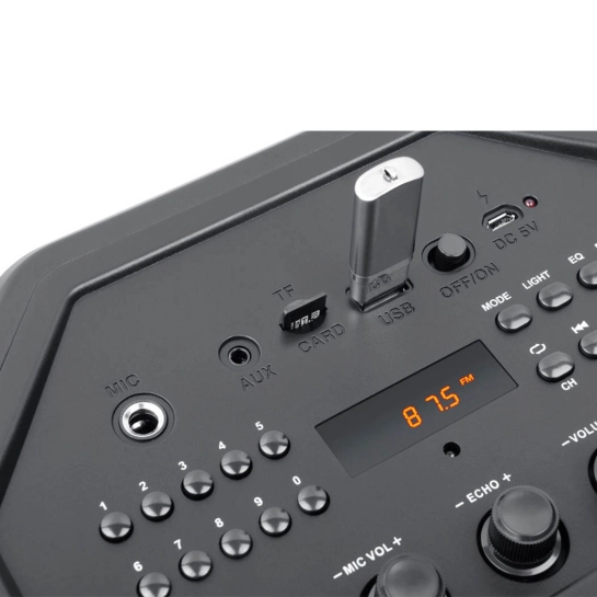 Для любителів співати та проводити веселі вечірки передбачено функцію караоке та роз’єм для підключення мікрофона. Пристрій підтримує ефект еха, завдяки чому звучання вокалу стає об’ємним та виразним. Це робить колонку не просто програвачем, а повноцінним музичним центром для розваг.