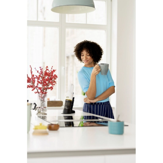 Ефективний помічник у повсякденному прибиранні: ручний акумуляторний пилосос CVH 3 Plus ретельно видаляє сміття всіх видів (наприклад, пил, волосся або крихти їжі) з будь-яких місць. При цьому 2-ступінчаста система фільтрації, що допускає промивання, що складається з дрібнокомірчастої сталевої сітки, що затримує волосся і велике сміття, і встановленого після неї фільтр HEPA-фільтра (за стандартом EN 1822:1998), гарантує випуск з апарату чистого повітря. Інші його переваги: висока сила всмоктування, низький рівень шуму та довгий термін служби завдяки застосуванню безщіткового двигуна постійного струму, компактність та мала вага, можливість тривалої (до 20 хв) роботи від одного заряду завдяки двом режимам потужності та наявність зручної зарядної станції, що дозволяє також зберігати аксесуари.