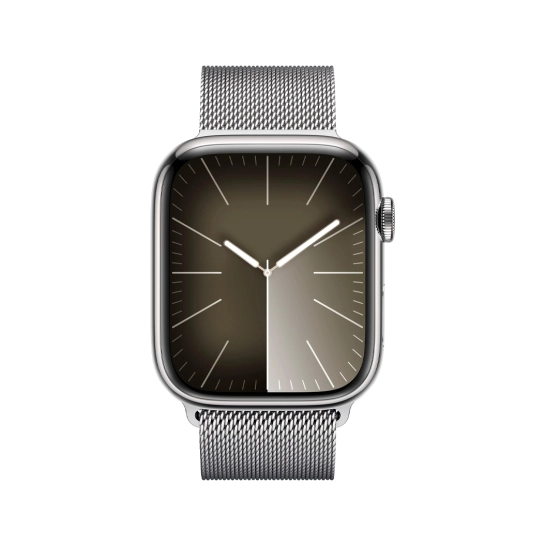 Опис Б/У Смарт-годинник Apple Watch 9 + LTE 41mm Silver Stainless Steel with Silver Milanese Loop (Отличное)