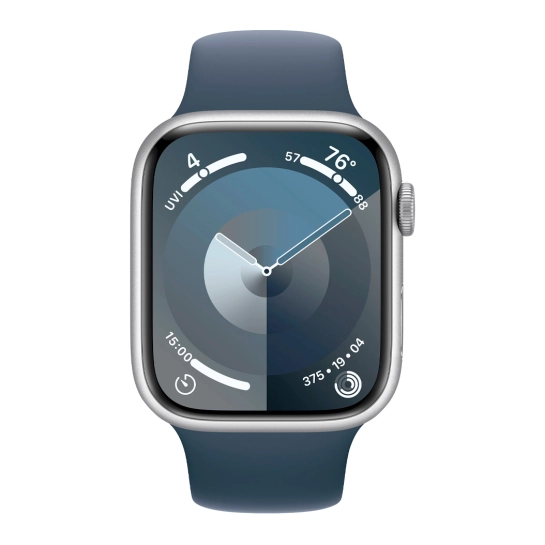 Опис Б/У Смарт-годинник Apple Watch 9 + LTE 45mm Silver Aluminum Case with Storm Blue Sport Band (Идеальное)