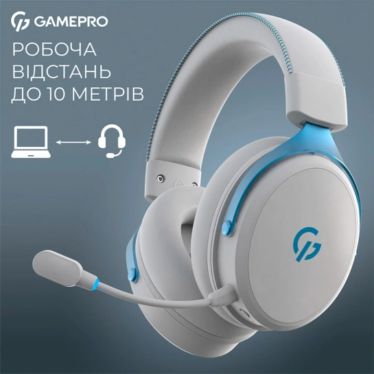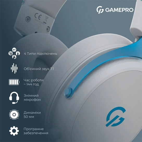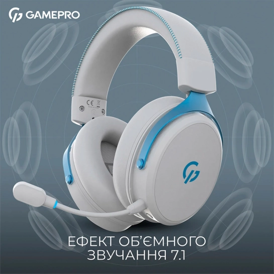 Характеристики для Бездротова ігрова гарнітура GamePro Asgard Skadi White/Blue (HSW191WB)