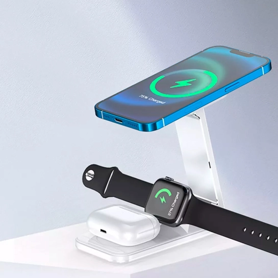 Magnetic Energy Fold допоможе зарядити відразу три різні пристрої без втрати потужності. Гаджет має 3 різні точки контакту: для годинника, навушників і смартфона, компактно розміщених і не заважають один одному.