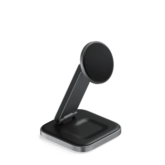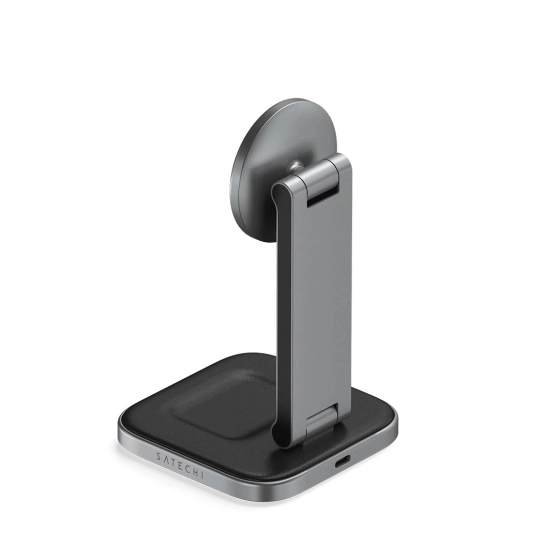 Опис Бездротовий зарядний пристрій Satechi 2-in-1 Foldable Qi2 Stand Space Gray (ST-Q21FM)